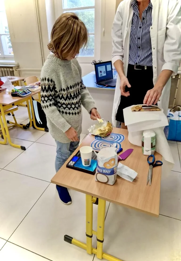 - ,,Pokaż łakotku co masz w środku” – analiza składu przetworzonych produktów spożywczych z jednoczesnym odmierzaniem na wadze zawartości cukru, soli, tłuszczów i innych dodatków.